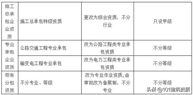 2、建筑總承包特級(jí)資質(zhì)改為綜合資質(zhì),不分行業(yè)、只設(shè)甲級(jí),承攬項(xiàng)目范圍無(wú)限擴(kuò)大。