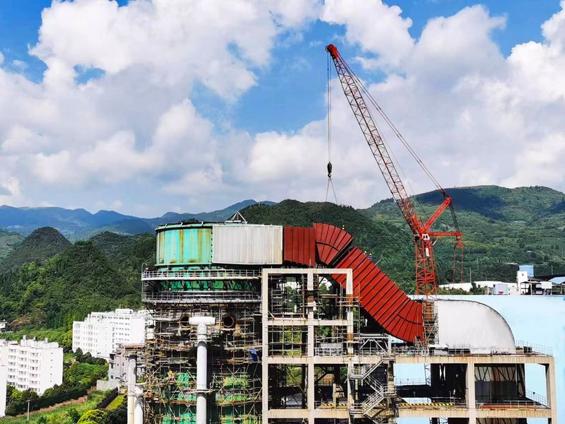 2022年8月10日,在起重機械的隆隆聲響中,中威集團華能云南滇東電廠脫硫系統改造項目煙道安裝最后一吊吊裝到位,最后一節煙道緩緩合攏,這意味著該項目又一單體工程告一段落。