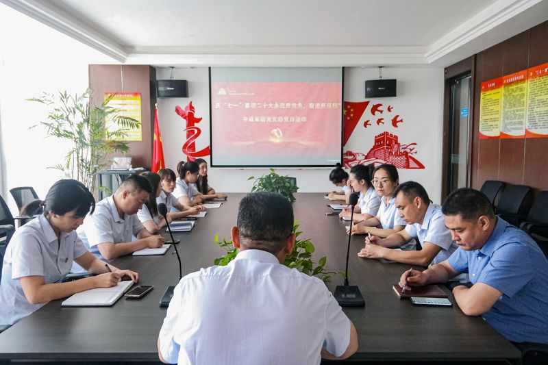 永葆初心正出彩,中華有威展雄姿。為慶祝中國共產黨成立101周年,喜迎黨的二十大勝利召開,扎實推進集團黨建工作建設,教育引導黨員、職工牢固樹立“四個意識”、堅定“四個自信”、做好“兩個維護”,弘揚向先進看齊、向先進學習的優良作風,7月1日建黨節當日,中威集團組織黨員、入黨積極分子、發展對象和各部門員工代表在黨建室舉行了“喜迎二十大 ,永遠跟黨走,?奮進新征程”?主題黨日活動。